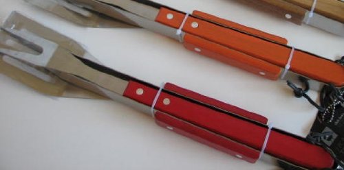 3 Piece BBQ Tool Set Stainless Steel and Wood - Red (2 sets) Review