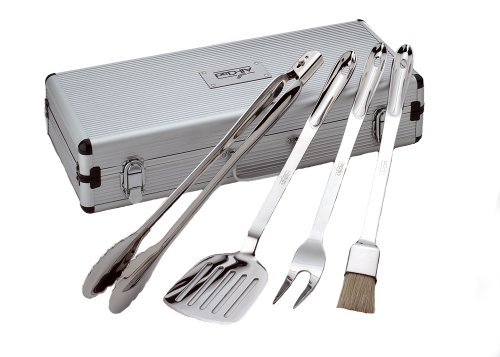 All-Clad T147 BBQ Tool Set with Stainless Steel Tongs/Spatula/Fork/Brush in 19 by 8 by 4-Inch Carrying Case, Silver Review