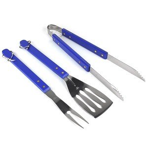 - Backyard BBQ 3-Piece Outdoor Grill Set General Features: Blue color Wooden handles