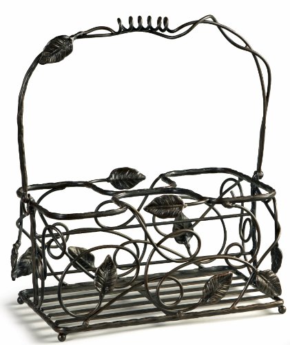 - Vine-motif drink or kitchen utensil caddy is made from powder coated metal with antiqued bronze finish